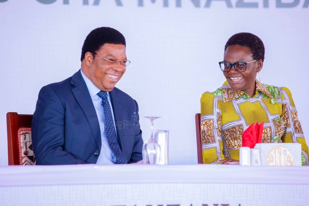 Waziri Mkuu Kassim Majaliwa akiteta jambo na Spika wa Bunge la Jamhuri ya Muungano wa Tanzania Mhe. Dkt. Tulia Ackson wakati wa hafla ya Utiaji Saini Mkataba wa Mauziano ya Hisa za Kampuni ya Wentworth Resources PLC katika Kitalu cha Mnazi Bay baina ya Shirika la Maendeleo ya Petroli Tanzania (TPDC) na Kampuni ya M&P tarehe 03 Februari, 2024.
