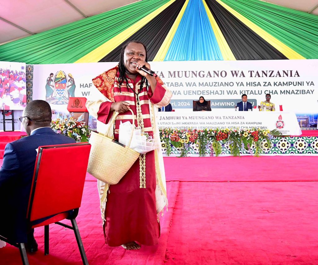 Msanii Mrisho Mpoto akitumbuiza kwenye hafla ya utiaji Saini Mkataba wa Mauziano ya Hisa za Kampuni ya Wentworth Resources PLC katika Kitalu cha Mnazi Bay baina ya Shirika la Maendeleo ya Petroli Tanzania (TPDC) na Kampuni ya M&P iliyofanyika katika viwanja vya Ikulu Chamwino Mkoani Dodoma tarehe 03 Februari, 2024.