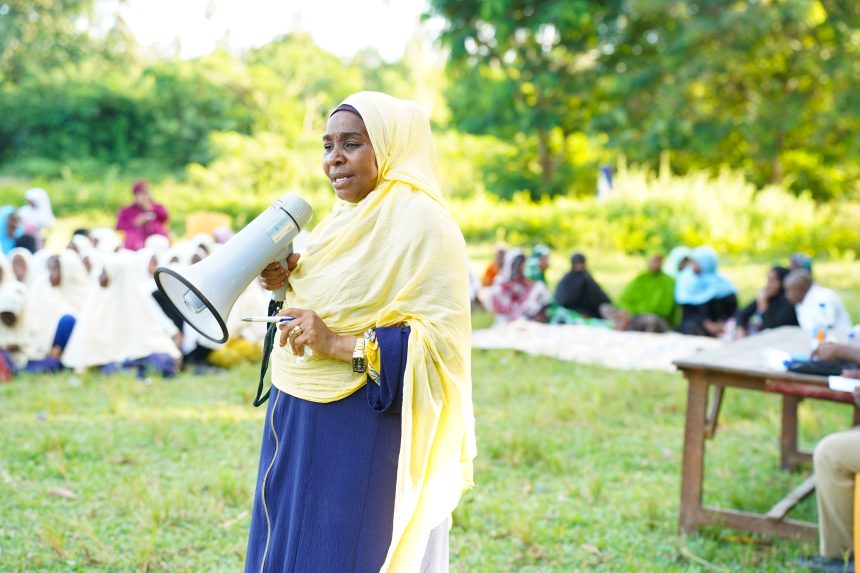 Wakili wa Serikali Mkuu kutoka Ofisi ya Mwanasheria Mkuu Zanzibar Hamisa Mmanga Makame akizungumza na Wananchi wa Mangapawani Uwandani Mkoa wa Kaskazini Unguja wakati Afisi ya Mwanasheria Mkuu ilipoenda kutoa elimu ya masuala mbali mbali ya kisheria kwa wananchi ikiwa ni shamra shamra ya wiki ya sheria Zanzibar.