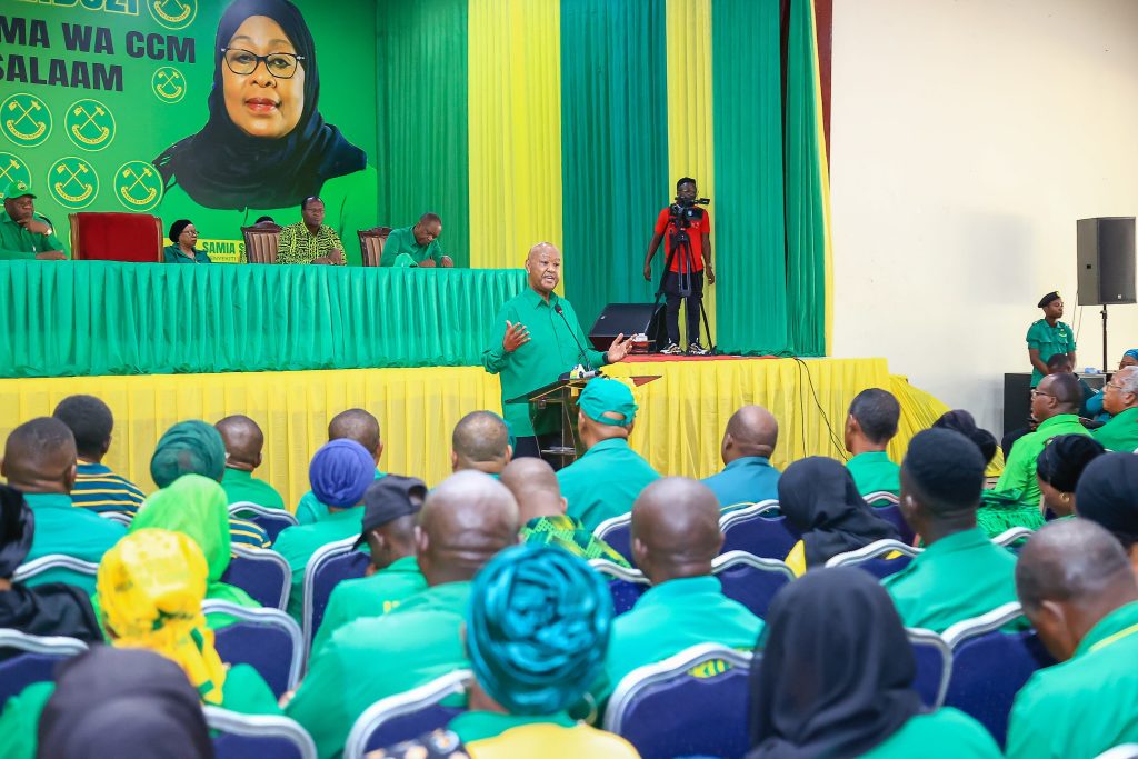 Makamu Mwenyekiti wa CCM Ndg Kinana akizungumza na Viongozi na wanachama wa CCM Mkoa Wa Dar Es Salaam Leo (Picha na Fahadi Siraji)