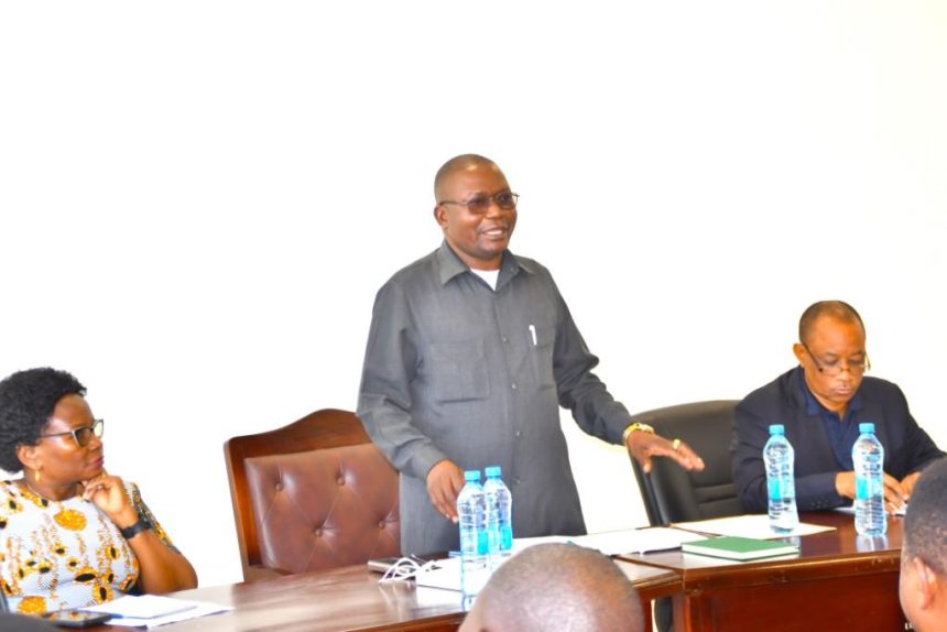 Mkurugenzi wa Utawala na Rasilimali Watu wa Wizara ya Ardhi Nyumba na Maendeleo ya Makazi Sheushi Mbuli akizungumza katika kikao cha Naibu Waziri wa Ardhi Nyumba na Maendeleo ya Makazi Mhe. Geophrey Pinda na watumishi wa wizara ya Ardhi Makao Makuu tarehe 9 Februari 2024 jijini Dodoma. (PICHA ZOTE NA WIZARA YA ARDHI).