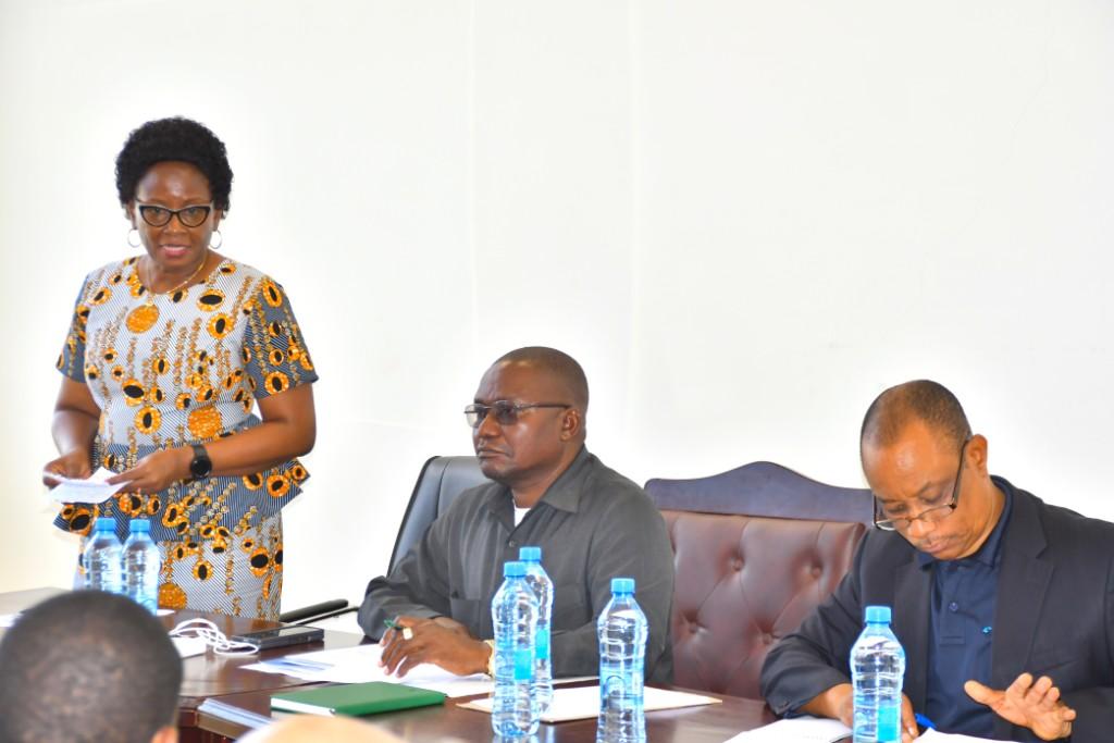 Naibu Katibu Mkuu Wizara ya Ardhi Nyumba na Maendeleo ya Makazi Lucy Kabyemera akizungumza kwenye kikao cha Naibu Waziri wa Ardhi Nyumba na Maendeleo ya Makazi Mhe. Geophrey Pinda na watumishi wa wizara ya Ardhi Makao Makuu tarehe 9 Februari 2024 jijini Dodoma.