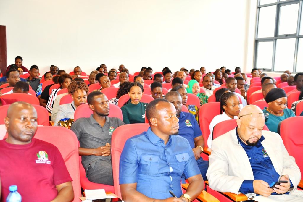 Sehemu ya watumishi wa Wizara ya Ardhi Makao Makuu wakiwa katika kikao na Naibu Waziri wa Ardhi Nyumba na Maendeleo ya Makazi Mhe. Geophrey Pinda tarehe 9 Februari 2024 jijini Dodoma.