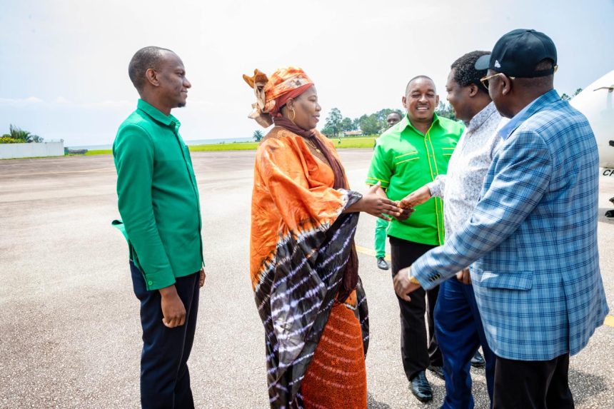 Katibu Mkuu wa Chama Cha Mapinduzi (CCM), Balozi Dk. Emmanuel John Nchimbi, akipokelewa na kusalimiana na viongozi mbalimbali wa Chama na Serikali, alipowasili Uwanja wa Ndege wa Bukoba, mkoani Kagera, leo Jumatatu, Februari 19, 2024, kwa ajili ya kushiriki mazishi ya Balozi (mstaafu) Dk. Deodorus Buberwa Kamala, anayetarajiwa kuzikwa kesho Jumanne, Februari 20, 2024, kijijini kwake Bwanjai, Wilaya ya Misenyi, Mkoa wa Kagera.
