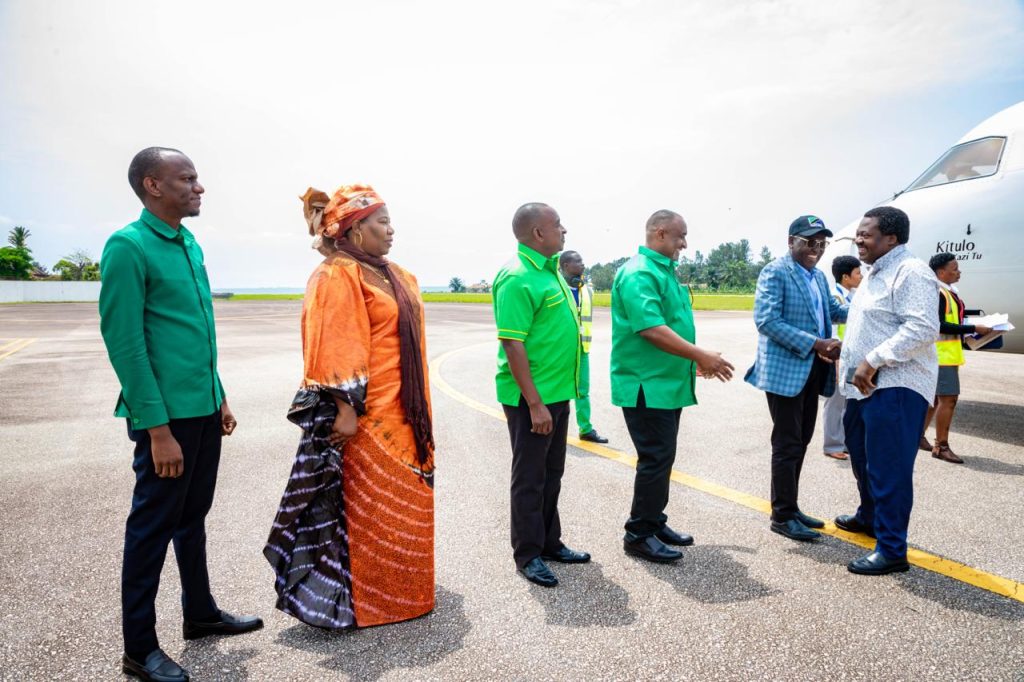 Katibu Mkuu wa Chama Cha Mapinduzi (CCM), Balozi Dk. Emmanuel John Nchimbi, akipokelewa na kusalimiana na viongozi mbalimbali wa Chama na Serikali, alipowasili Uwanja wa Ndege wa Bukoba, mkoani Kagera, leo Jumatatu, Februari 19, 2024, kwa ajili ya kushiriki mazishi ya Balozi (mstaafu) Dk. Deodorus Buberwa Kamala, anayetarajiwa kuzikwa kesho Jumanne, Februari 20, 2024, kijijini kwake Bwanjai, Wilaya ya Misenyi, Mkoa wa Kagera.
