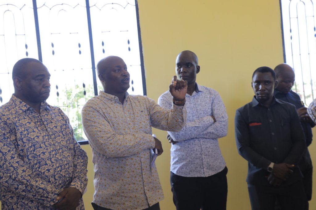 Mwenyekiti wa Kamati ya Bunge ya Tawala za Mikoa na Serikali za Mitaa (TAMISEMI), Mheshimiwa Denis Londo akizungumza na watendaji mbalimbali wakati Kamati hiyo ilitembelea na kukagua ujenzi wa Shule ya Msingi Igima iliyopo Halmashauri ya Mlimba mkoani Morogoro. Kushoto ni Naibu Katibu Mkuu Ofisi ya Rais TAMISEMI, Sospeter Mtwale na kulia ni Mkuu wa Wiaya ya Ifakara Dunstan Kyoba