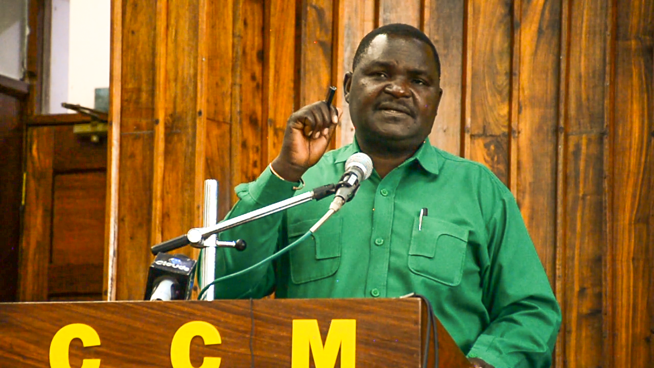 Katibu Mtendaji Ofisi ya mufti Zanzibar Sheikh Khalid Ali Mfaume akizungumza katika hafla ya ufungaji wa mafunzo ya walimu wa madrasa mkupuo wa kwanza huko skuli ya Amali Kiongoni Makunduchi Wilaya ya kusini Mkoa wa Kusini Unguja.