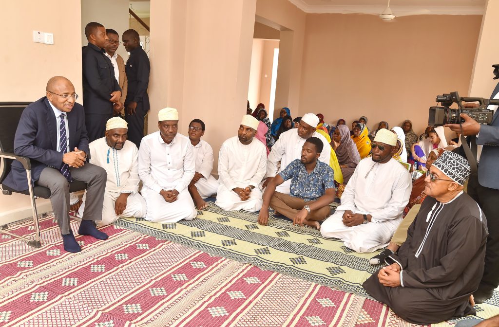 RAIS wa Zanzibar na Mwenyekiti wa Baraza la Mapinduzi Mhe.Dk.Hussein Ali Mwinyi akizungumza na kutowa mkono wa pole kwa Familia ya Marehemu Masauni Yussuf Masauni Baba Mzazi wa Waziri wa Mbambo ya Ndani ya Nchi Mhe.Hamad Masauni Yussuf, alipofika nyumbani kwa marehemu Migombani Wilaya ya Mjini Unguja Jijini Zanzibar leo 24-2-2024.(Picha na Ikulu)