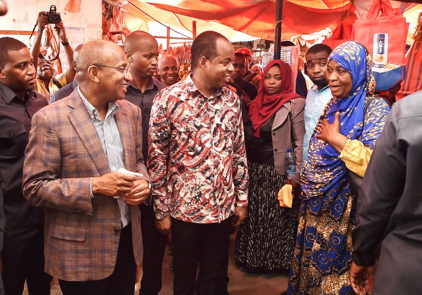 RAIS wa Zanzibar na Mwenyekiti wa Baraza la Mapinduzi Mhe.Dk.Hussein Ali Mwinyi akisaliana na Wananchi wakati akiwa katika ziara ya kutembelea Marikiti Kuu ya Darajani Wilaya ya Mjini Unguja Jijini Zanzibar leo 26-2-2024, na (kushoto kwa Rais) Waziri wa Nchi Ofisi ya Rais Tawala za Mikoa, Serikali za Mitaa na Idara Maalum za SMZ Mhe. Masoud Ali Mohammed.(Picha na Ikulu).