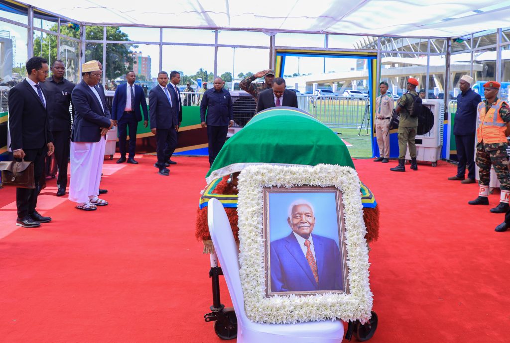 Tukio la kuagwa kwa Mwili wa Rais Mstaafu wa Awamu ya Pili wa Jamhuri ya Muungano wa Tanzania Hayati Ali Hassan Mwinyi katika Uwanja wa Uhuru Jijini Dar es salaam limehudhuriwa na Waziri Mkuu wa Ethiopia Mhe. Abiy Ahmed Ali, viongozi mbalimbali wa kitaifa, Mabalozi wa Mataifa mbalimbali, Viongozi wa Ulinzi na Usalama, Viongozi wa Dini mbalimbali pamoja na Wananchi.