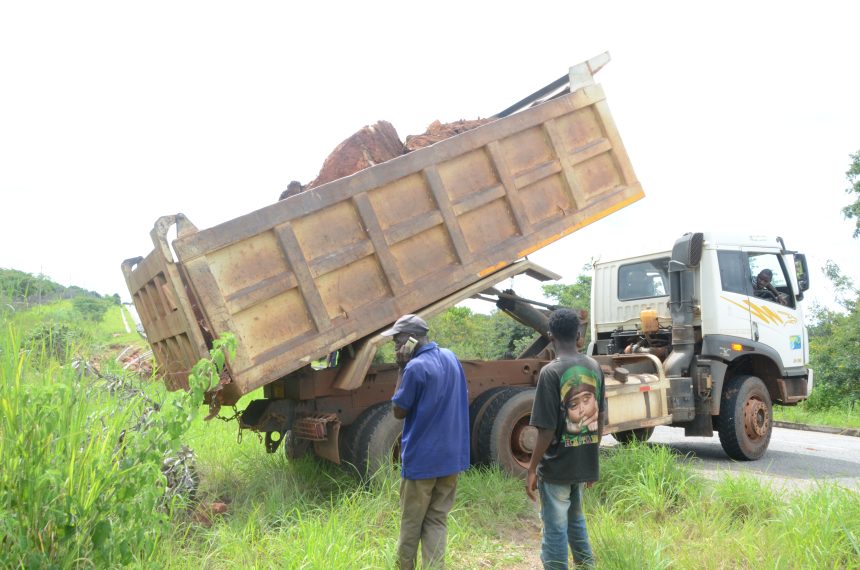 Lori la kampuni ya Ovans Contructions Ltd inayofanya kazi ya kurejesha miundombinu ya barabara katika daraja la mto Namiungo wilayani Tunduru likimwaga mawe kwa ajili ya kurejesha mawasiliano ya uhakika katika eneo hilo.