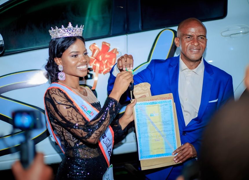 Sara David Mlimbwende aliyetwaa taji ya Miss Sed anaeleza kufuraha yake baada ya kukabidhiwa gari jipya na zawadi ya shilingi milioni moja .