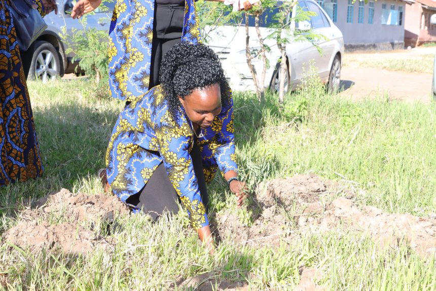 Mkuu wa Kitengo cha Ununuzi na Ugavi Specioza Segesela akiongoza Wanawake wa Tume ya Maendeleo ya Ushirika (TCDC) kupanda miti katika Maadhimisho ya Siku ya Wanawake Duniani katika eneo la Shule ya Msingi Amani Jijini Dodoma.