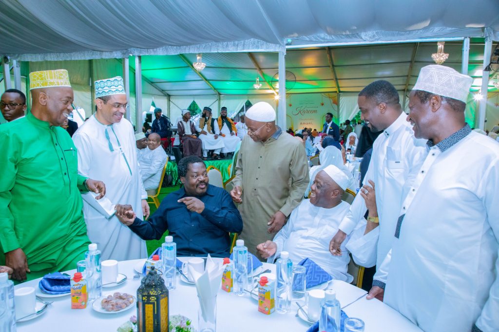 Katibu Mkuu wa Chama Cha Mapinduzi (CCM), Balozi Dk. Emmanuel John Nchimbi akizungumza jambo na Viongozi wa Klabu ya Mpira wa Miguu ya Simba, ambao ni Mwenyekiti wa Bodi ya Wakurugenzi ya Simba SC, Salim Abdalla Muhene (aliyeshikana nae mkono), Mwenyekiti wa Klabu ya Simba, Murtaza Ally Mangungu (kushoto kwa Dk. Nchimbi) na Meneja wa Habari na Mawasiliano wa Klabu ya Simba Ahmed Ally (wa pili kutoka kulia pichani), huku Mwenyekiti wa CCM Mkoa wa Dar Es Salaam, Ndugu Abbas Mtemvu (wa tatu kutoka kulia pichani), Katibu wa CCM Mkoa wa Dar Es Salaam, Ndugu Adam Ngalawa (wa kwanza kulia) na Mjumbe wa Halmashauri Kuu ya CCM (NEC) Taifa, Ndugu Juma Simba ‘Gadafi’ wakifuatilia mazungumzo hayo. Ilikuwa wakati wa futari iliyoandaliwa na Rais wa Jamhuri ya Muungano wa Tanzania, Mhe. Dk. Samia Suluhu Hassan, ambaye pia ni Mwenyekiti wa CCM, Jumanne, Machi 12, 2024, Ikulu, Dar Es Salaam.