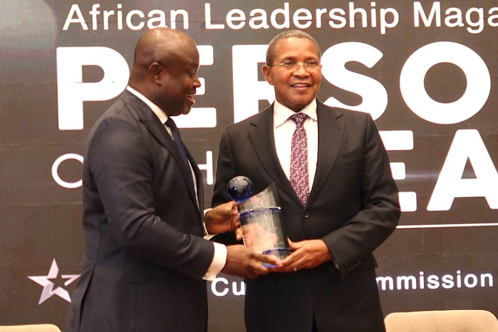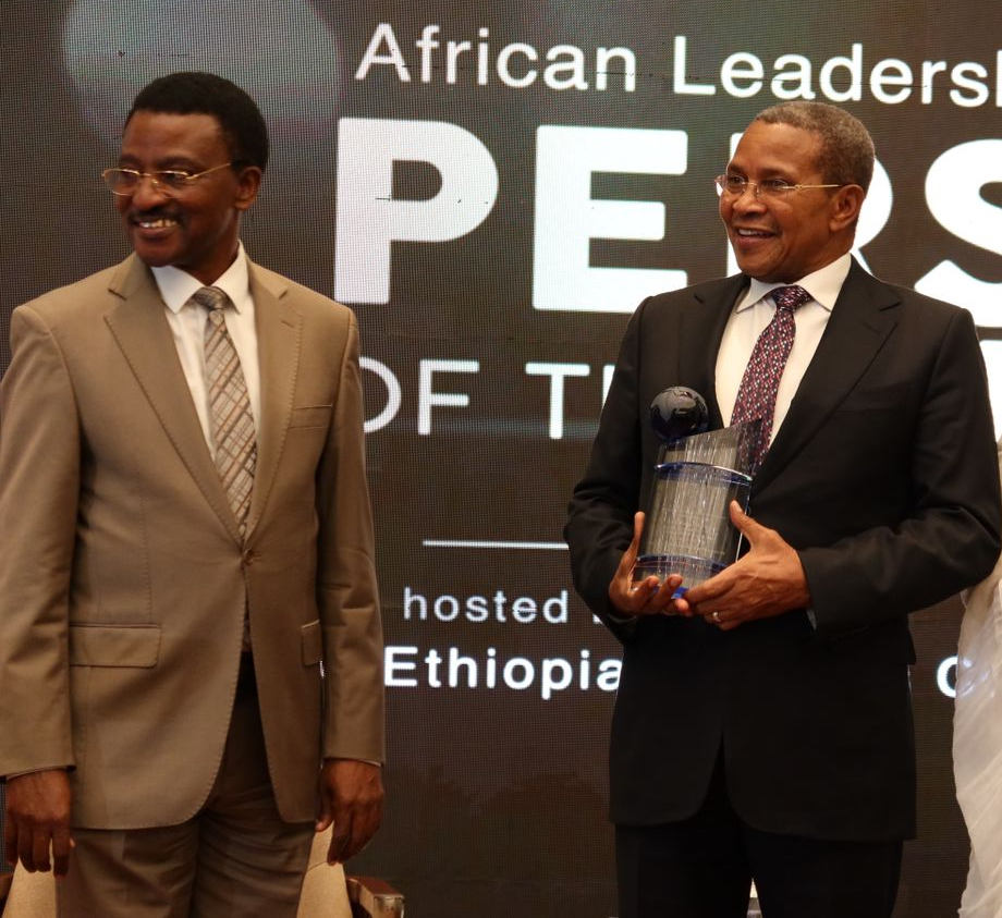 Rais Mstaafu Dk. Jakaya Mrisho Kikwete akiwa na tuzo yake kwenye hafla ya kila mwaka ya Tuzo za Watu Bora wa Mwaka za ALM katika Hoteli ya Ethiopian Skylight jijini Addis Ababa, Ethiopia, usiku huu.