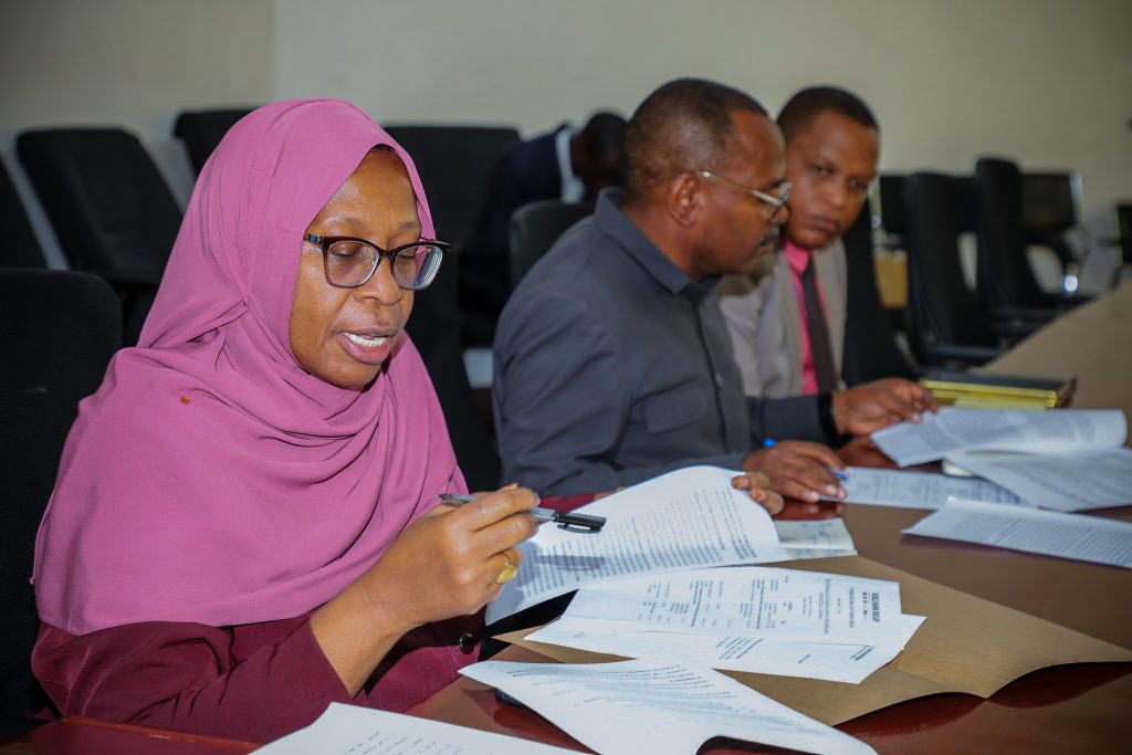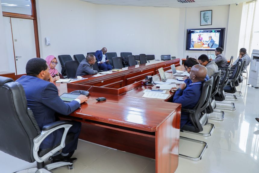 Naibu Katibu Mkuu wa Wizaraya Fedha, Bi Amina Khamis Shaaban, akifafanua jambo wakati wa mkutano wa Benki ya Dunia wa Jukwaa la Tatu la Kanda ya Afrika Kundi la Kwanza kwa nchi za Kipato cha Kati, ambapo Waziri wa Fedha Mhe. Dkt. Mwigulu Lameck Nchemba (Mb) aliongoza mkutano huo uliofanyika kwa njia ya mtandao, kutokea Jengo la Hazina (Treasury Square), jijini Dodoma. (Picha na Kitengo cha Mawasiliano Serikalini, Wizara ya Fedha)