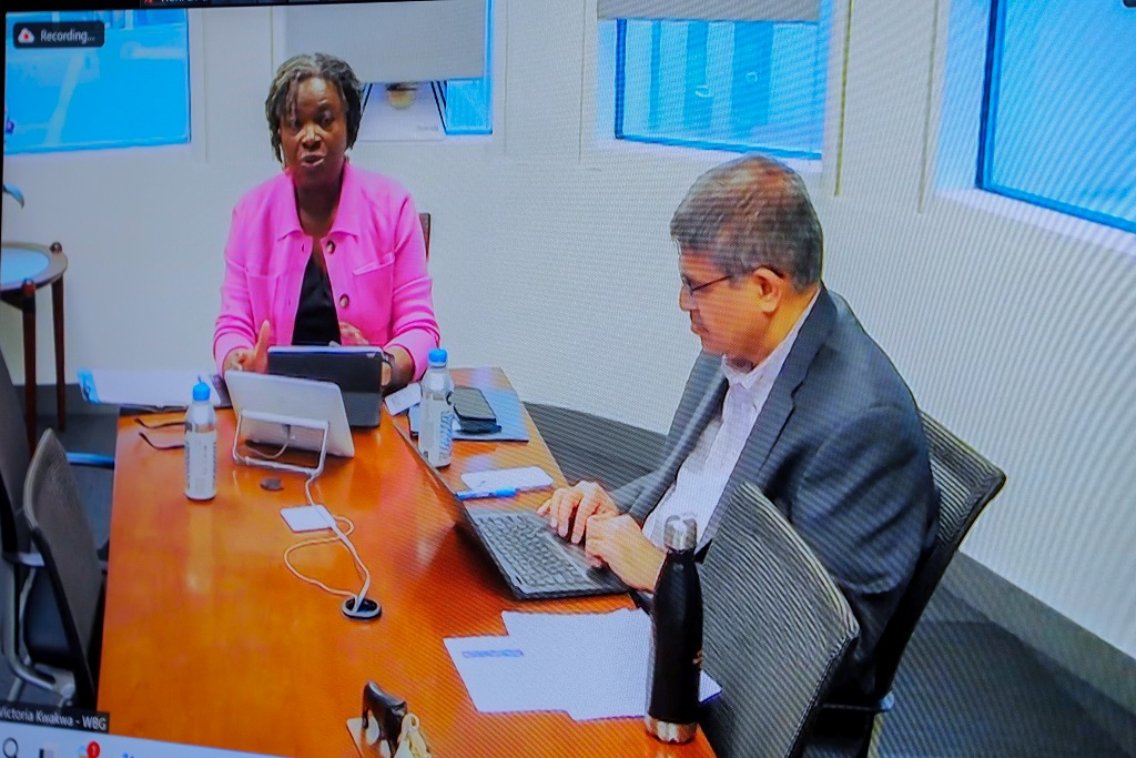 Makamu wa Rais wa Benki ya Dunia Kanda ya Mashariki na Kusini mwa Afrika, Bi. Victoria Kwaka, akitoa mada wakati wa mkutano wa Benki ya Dunia wa Jukwaa la Tatu la Kanda ya Afrika Kundi la Kwanza kwa nchi za Kipato cha Kati, ambapo Waziri wa Fedha Mhe. Dkt. Mwigulu Lameck Nchemba (Mb) aliongoza mkutano huo uliofanyika kwa njia ya mtandao, kutokea Jengo la Hazina (Treasury Square), jijini Dodoma.