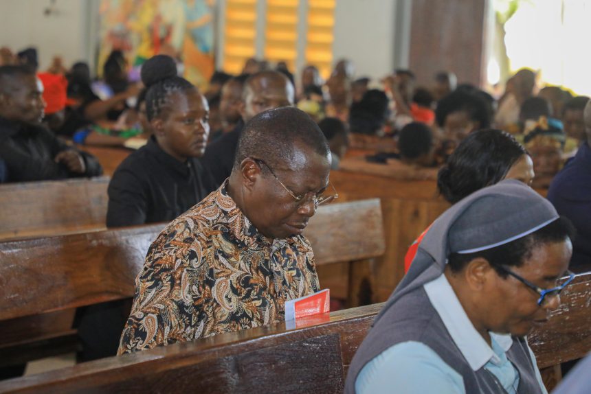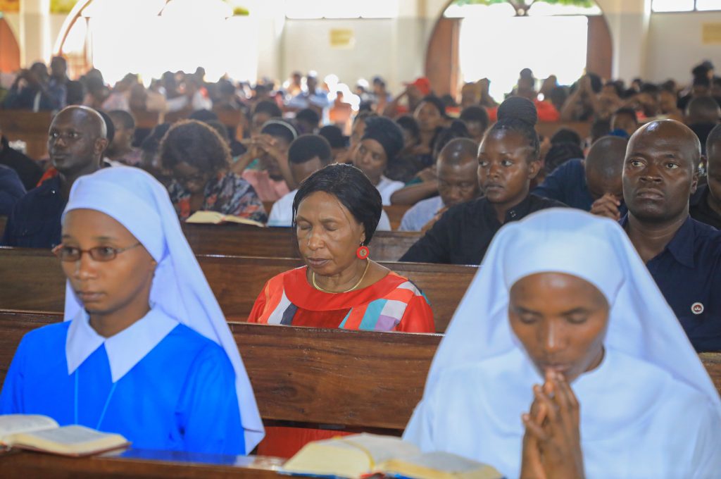 Makamu wa Rais wa Jamhuri ya Muungano wa Tanzania Mheshimiwa Dkt. Philip Mpango na Mwenza wake Mama Mbonimpaye Mpango wameungana na waumini mbalimbali kushiriki Ibada ya Ijumaa Kuu katika Parokia ya Mwenyeheri Maria Theresa Ledochowska Kiwanja cha Ndege mkoani Dodoma Tarehe 29 Machi 2024.