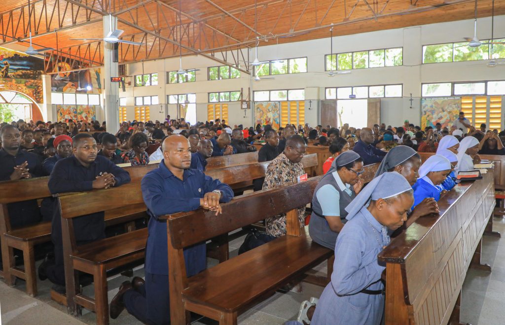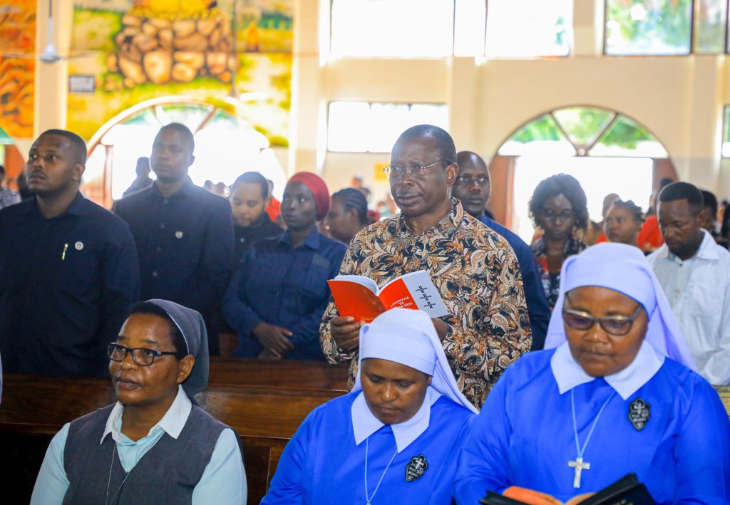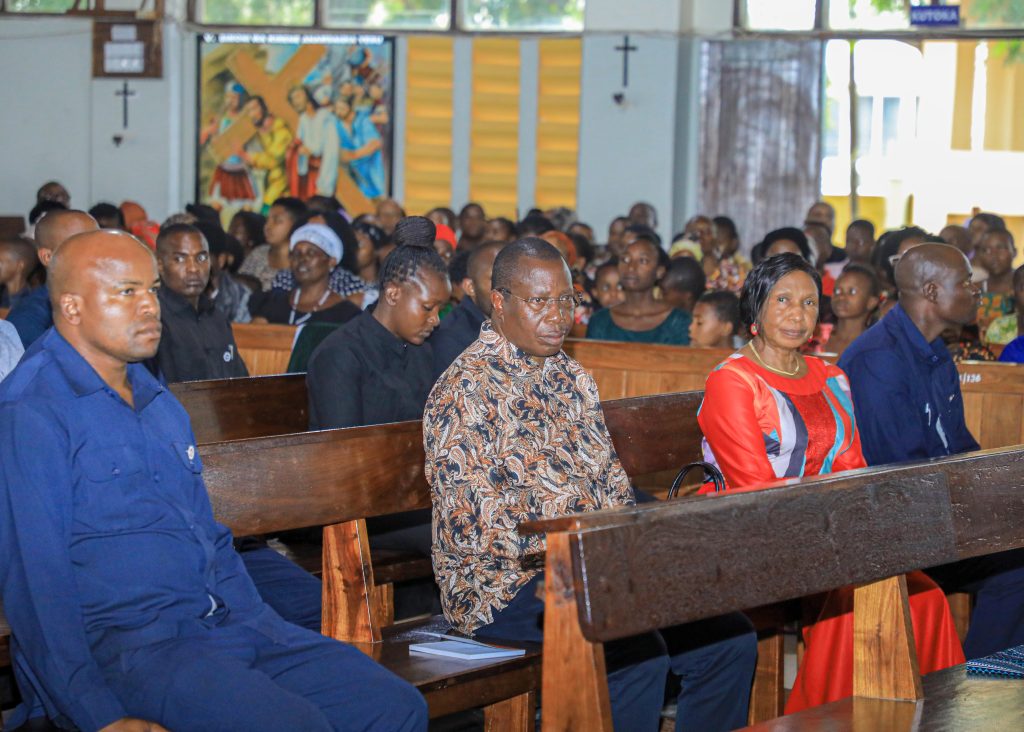 Makamu wa Rais wa Jamhuri ya Muungano wa Tanzania Mheshimiwa Dkt. Philip Mpango na Mwenza wake Mama Mbonimpaye Mpango wameungana na waumini mbalimbali kushiriki Ibada ya Ijumaa Kuu katika Parokia ya Mwenyeheri Maria Theresa Ledochowska Kiwanja cha Ndege mkoani Dodoma Tarehe 29 Machi 2024.