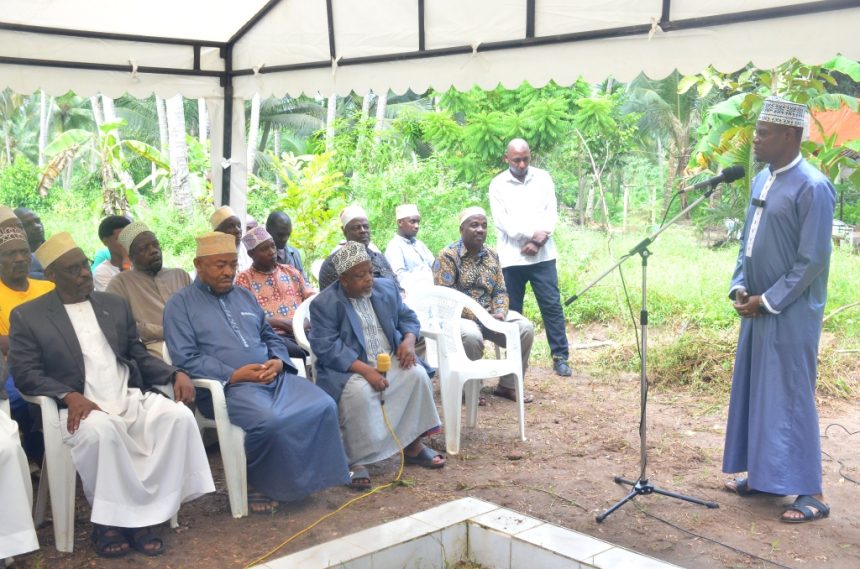 Mtoto wa Familia ya Marehemu Meja Jenerali Mstaafu Abdalla Said Natepe Ali Abdalla Natepe akitoa neno la Shukurani Baada ya kumalizika kwa Dua Maalum ya kumuombea marehemu Ikiwa ni katika Madhimisho ya Wiki ya Kuwaenzi Viongozi wa Kitaifa,Waasisi wa Mapinduzi ya Zanzibar na Katibu wa kwanza wa Chama cha Afro Shirazi na Siku ya kumbukumbu ya Marehemu Sheikh Abeid Amani karume hafla iliofanyika kijiji cha Mwache alale Magharibi A Zanzibar.