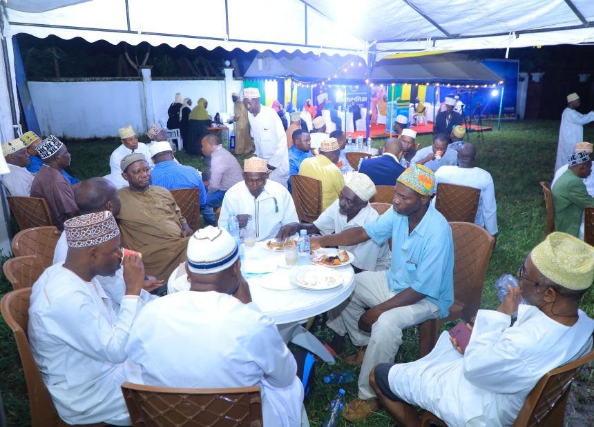 Wananchi mbalimbali wa Wilaya ya Mafia mkoani Pwani wakijumuika katika futari iliyoandaliwa na Makamu wa Rais wa Jamhuri ya Muungano wa Tanzania Mheshimiwa Dkt. Philip Mpango aliyoitoa kwaajili ya wakazi wa Wilaya hiyo hususani watu wa makundi maalum wakiwemo walemavu, wazee na watoto wanaoishi katika mazingira magumu.