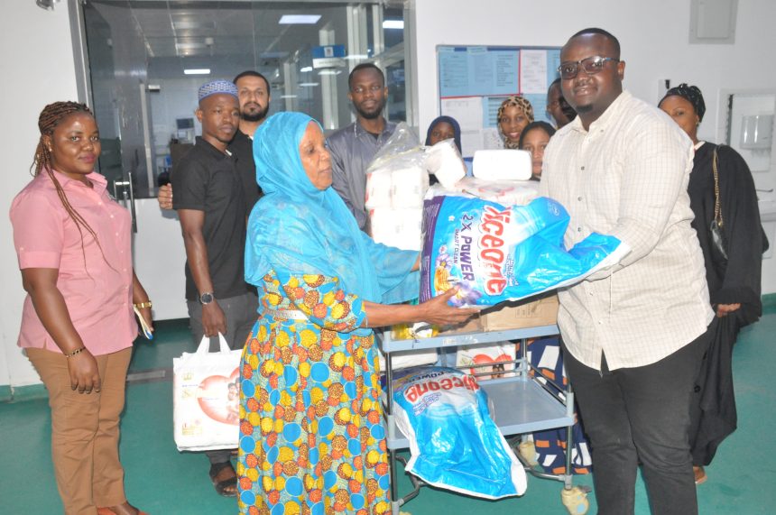 Mwenyekiti wa Umoja wa Vijana wa Chama Cha Mapinduzi (UVCCM) jimbo la Ilala Boaz Stanton akimkabidhi Mkuu wa Kitengo cha Ustawi wa Jamii wa Taasisi ya Moyo Jakaya Kikwete (JKCI) Asha Salum zawadi mbalimbali kwa ajili ya watoto waliolazwa katika Taasisi hiyo pamoja na walezi wao wanaowauguza.
