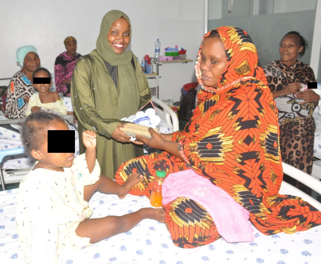 Katibu Umoja wa Vijana wa Chama Cha Mapinduzi (UVCCM) kata ya Gerezani Bahvii Sarjity akitoa zawadi kwa Jamila Kibwana kwa ajili ya mtoto wake aliyelazwa katika Taasisi ya Moyo Jakaya Kikwete (JKCI) wakati viongozi hao wa UVCCM jimbo la Ilala walipotembelea JKCI leo kwa ajili ya kutoa zawadi kwa watoto waliolazwa katika Taasisi hiyo pamoja na walezi wao wanaowauguza.
