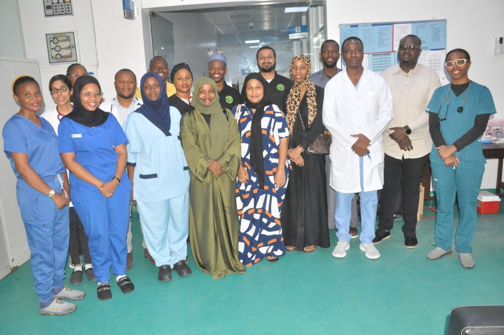 Viongozi wa Umoja wa Vijana wa Chama Cha Mapinduzi (UVCCM) jimbo la Ilala wakiwa katika picha ya pamoja na wafanyakazi wa Taasisi ya Moyo Jakaya Kikwete (JKCI) mara baada ya kuwakabidhi zawadi mbalimbali kwa ajili ya watoto waliolazwa katika Taasisi hiyo pamoja na walezi wao wanaowauguza.