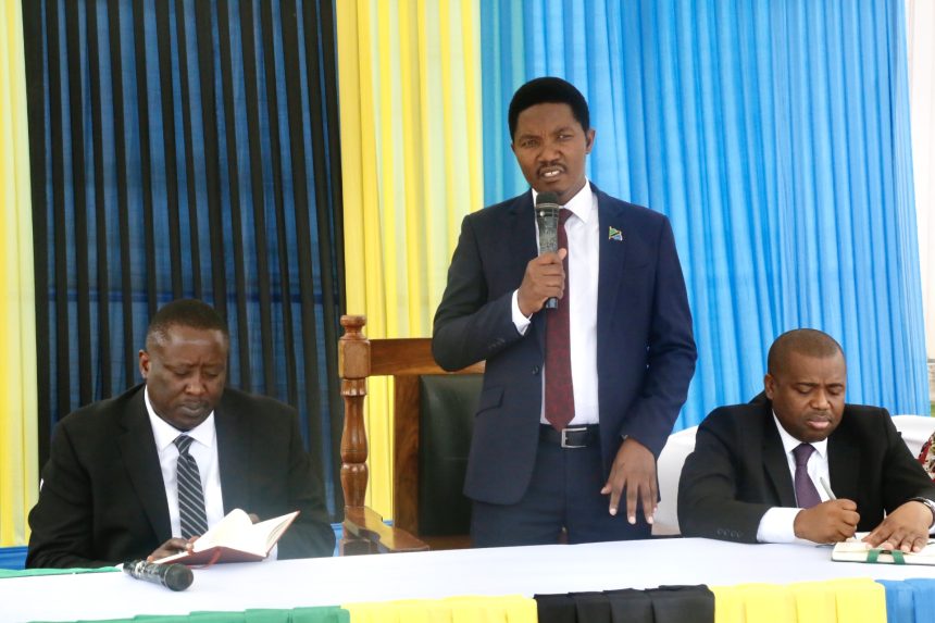 Naibu Katibu Mkuu (Muungano) Ofisi ya Makamu wa Rais Bw. Abdallah Hassan Mitawi akizungumza wakati wa mkutano wa Waziri wa Nchi Ofisi ya Makamu wa Rais (Muungano na Mazingira) Mhe. Dkt. Selemani Jafo na viongozi, watendaji na watumishi wa Ofisi hiyo aprili 8, 2024.