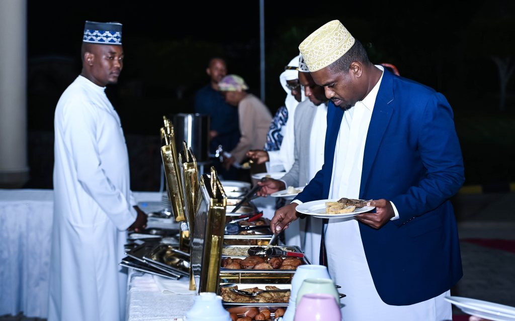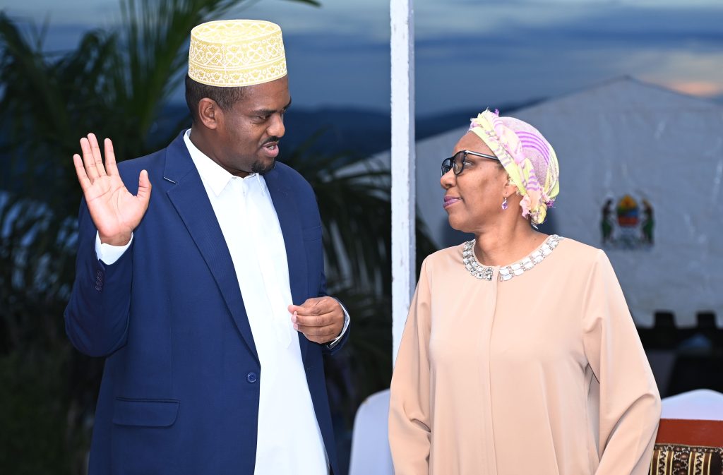 Waziri wa Nchi, Ofisi ya Waziri Mkuu (Kazi, Vijana, Ajira na Wenye Ulemavu) Deogratius Ndejembi akizungumza na Katibu Mkuu Ofisi ya Waziri Mkuu (Sera, Uratibu na Bunge) Mary Maganga, wakati wa hafla ya iftari iliyoandaliwa na Waziri Mkuu kwa ajili ya watumishi wa Ofisi ya Waziri Mkuu na Taasisi zake, Mlimwa jijini Dodoma Aprili 09, 2024. (Picha na Ofisi ya Waziri Mkuu)