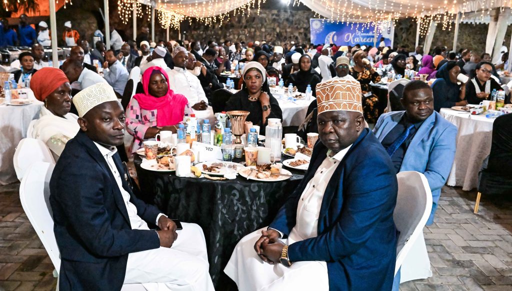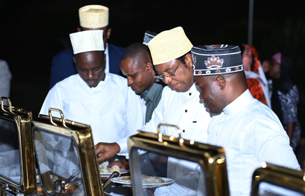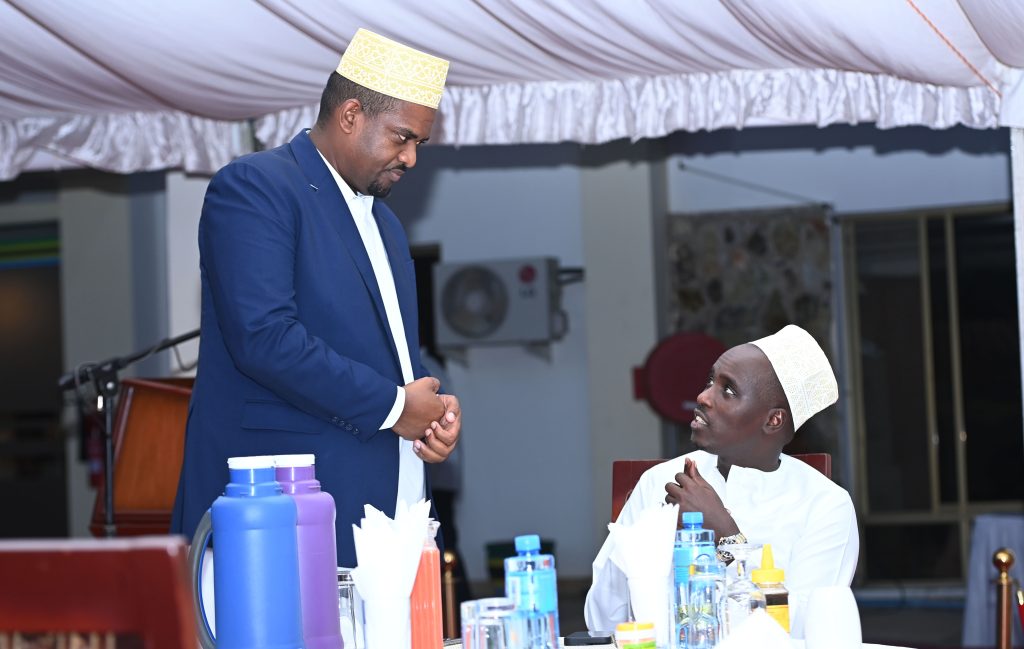 Naibu Waziri Mkuu na Waziri wa Nishati, Dkt. Doto Biteko akizungumza na Waziri wa Nchi, Ofisi ya Waziri Mkuu (Kazi, Vijana, Ajira na Wenye Ulemavu) Deogratius Ndejembi, wakati wa hafla ya iftari aliyoiandaa kwa ajili ya watumishi wa Ofisi ya Waziri Mkuu na Taasisi zake, Mlimwa jijini Dodoma Aprili 09, 2024. (Picha na Ofisi ya Waziri Mkuu)
