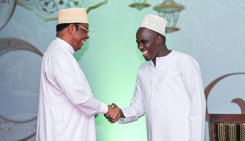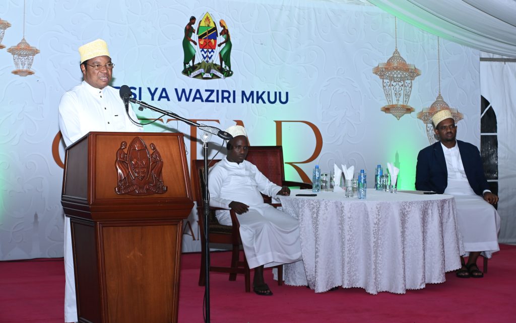 Waziri Mkuu Kassim Majaliwa akisalimiana na Naibu Waziri Mkuu na Waziri wa Nishati, Dkt. Doto Biteko wakati wa hafla ya iftari aliyoiandaa kwa ajili ya watumishi wa Ofisi ya Waziri Mkuu na Taasisi zake, Mlimwa jijini Dodoma Aprili 09, 2024. (Picha na Ofisi ya Waziri Mkuu)