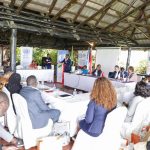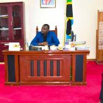 Makamu wa Pili wa Rais wa Zanzibar wa Zanzibar Mhe. Hemed Suleiman Abdulla akizungumza na Naibu Waziri Ofisi ya Makamu wa Rais (Muungano na Mazingira) Mhe. Khamis Hamza Khamis wakati akiondoka mara baada ya ufunguzi wa Maonesho ya Biashara Miaka 60 ya Muungano katika viwanja vya Mnazi Mmoja jijini Dar es Salaam leo Aprili 19, 2024. Kushoto ni Katibu Mkuu Ofisi ya Makamu wa Rais Mhandisi Cyprian Luhemeja.