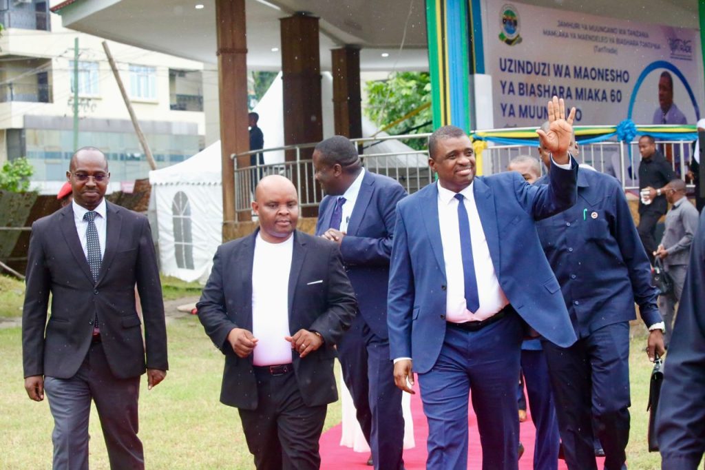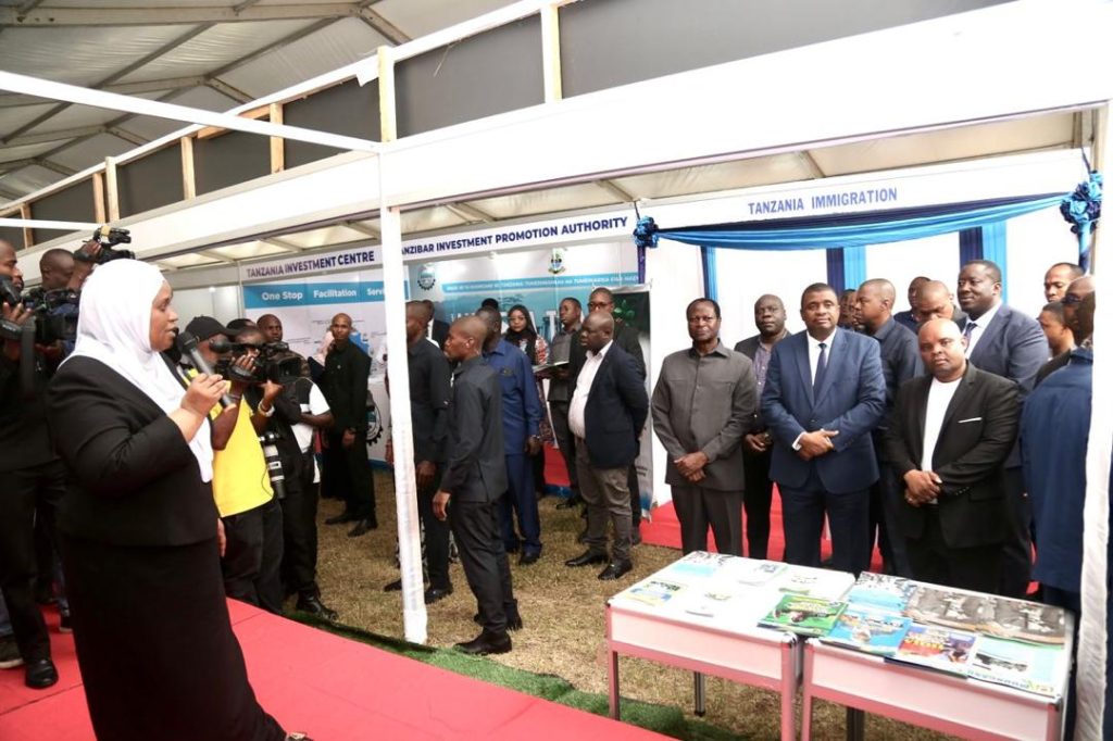 Makamu wa Pili wa Rais wa Zanzibar wa Zanzibar Mhe. Hemed Suleiman Abdulla akiwaaga wananchi mara baada ya kufungua Maonesho ya Biashara Miaka 60 ya Muungano katika viwanja vya Mnazi Mmoja jijini Dar es Salaam leo Aprili 19, 2024. Kushoto ni Mkuu wa Wilaya ya Ilala Edward Mpogolo aliyemwakilisha Mkuu wa Mkoa wa Dar es Salaam.