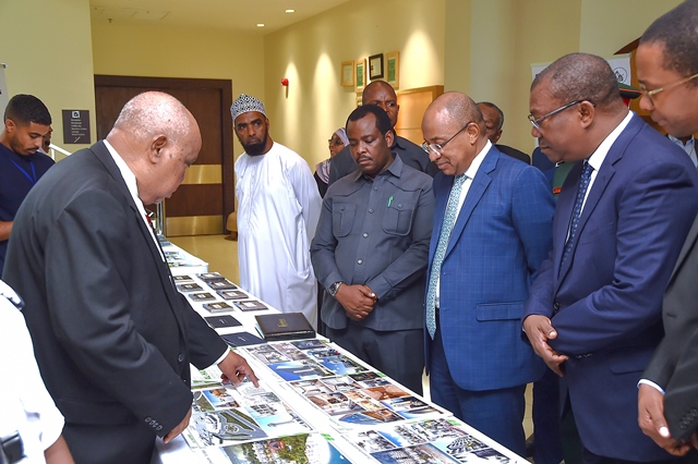 RAIS wa Zanzibar na Mwenyekiti wa Baraza la Mapinduzi Mhe.Dk.Hussein Ali Mwinyi akimsikiliza Mwakilishi wa Kampuni ya Al Hatmy Desigh&Engineering Consultancy Zanzibar Ndg.Abdulhamid Mohammed Ali Mhoma akitowa maelezo ya michoro ya majengo inayojenga kampuni hiyo Zanzibar,wakati akitembelea maonesho ya Wahandisi katika ukumbi wa Hoteli ya Verde Mtoni Jijini Zanzibar, kabla ya Uzinduzi wa Taasisi ya Wasanifu,Wahandisi na Wakadiriaji, uliyofanyika leo 20-4-2024, katika ukumbi wa hoteli hiyo na (kushoto kwa Rais) Waziri wa Ujenzi,Mawasiliano na Uchukuzi Zanzibar Mhe.Dkt.Khalid Mohamed Salum na (kulia kwa Rais) Kaimu Mkuu wa Mkoa wa Mjini Magharibi Unguja, Mkuu wa Mkoa wa Kusini Unguja. Mhe.Ayoub Mohammed Mahmoud.(Picha na Ikulu)