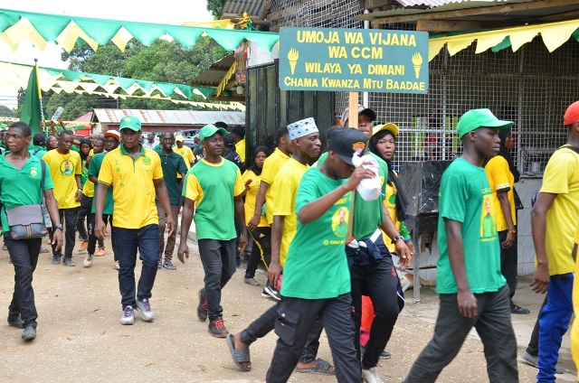 Vijana wa hamasa wakiwa katika mapokezi ya viongozi UVCCM Taifa huko Ghymkhana Wilaya ya Mjini.