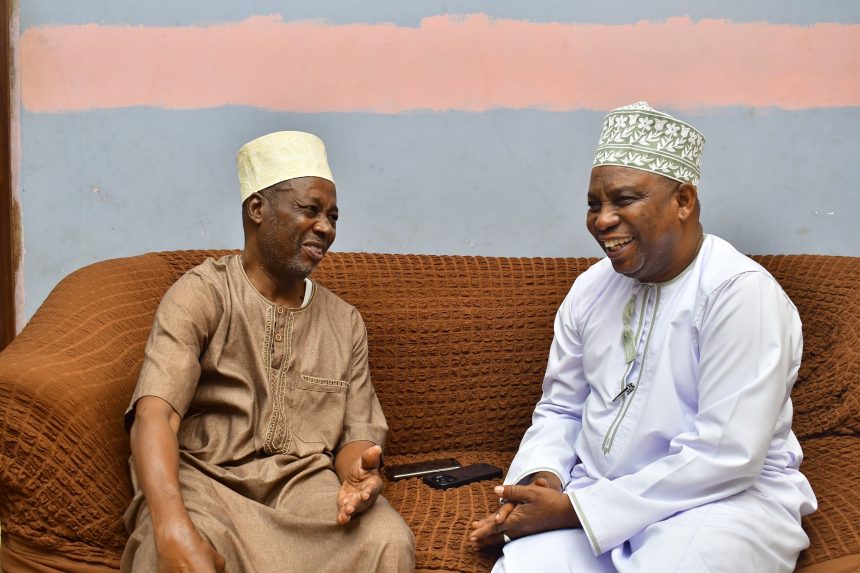 NAIBU Katibu Mkuu wa CCM Zanzibar Dkt.Mohamed Said Dimwa(upande wa kulia),akizungumza na Kadhi Mkuu mstaafu wa Zanzibar Sheikh Khamis Haji Khamis nyumbani kwake Mwanakwerekwe Unguja.