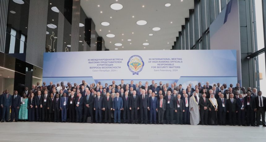 Katibu wa Baraza la Usalama la Shirikisho la Urusi, Nikolai Patrushev (wa kumi na tano kulia), akiwa katika picha ya pamoja na Maafisa wa Daraja la Juu kutoka serikalini wanaohusika na mambo ya Usalama kutoka takribani ya nchi 20 Duniani waliokutana nchini Urusi katika Jiji la St.Petersburg kujadili changamoto ya uhalifu wa kimtandao na jinsi ya kupambana nao.Tanzania pia inashiriki mkutano huo ikiwakilishwa na Waziri wa Mambo ya Ndani ya Nchi,Mhandisi Hamad Masauni.Picha na Wizara ya Mambo ya Ndani ya Nchi