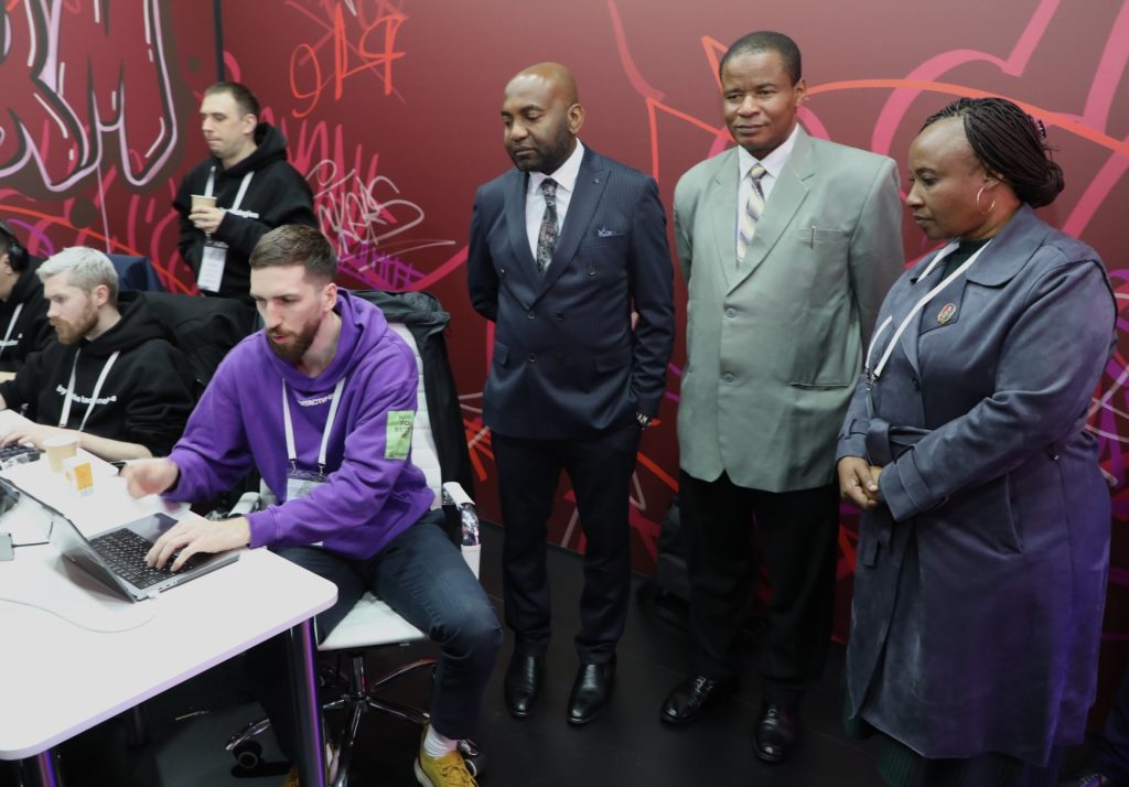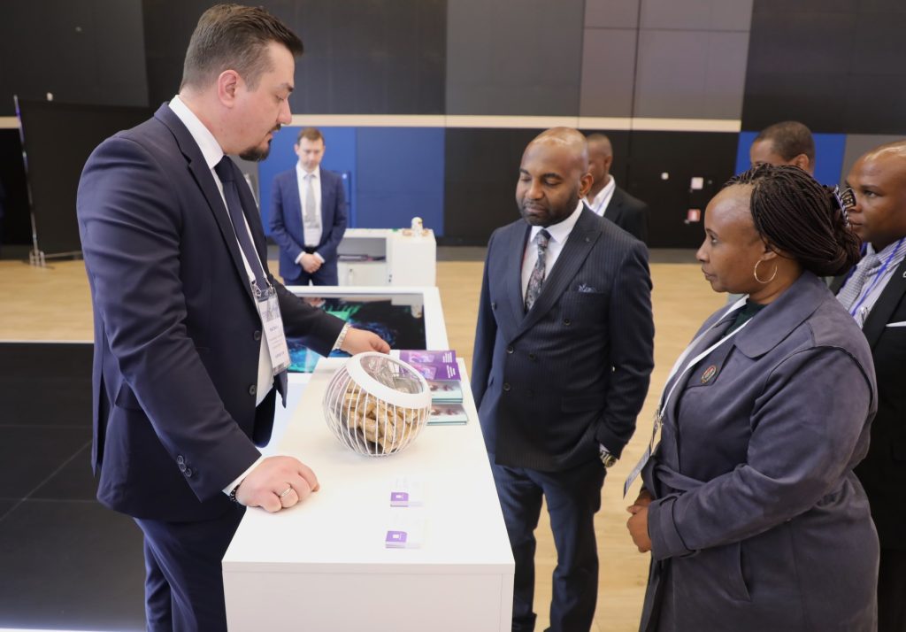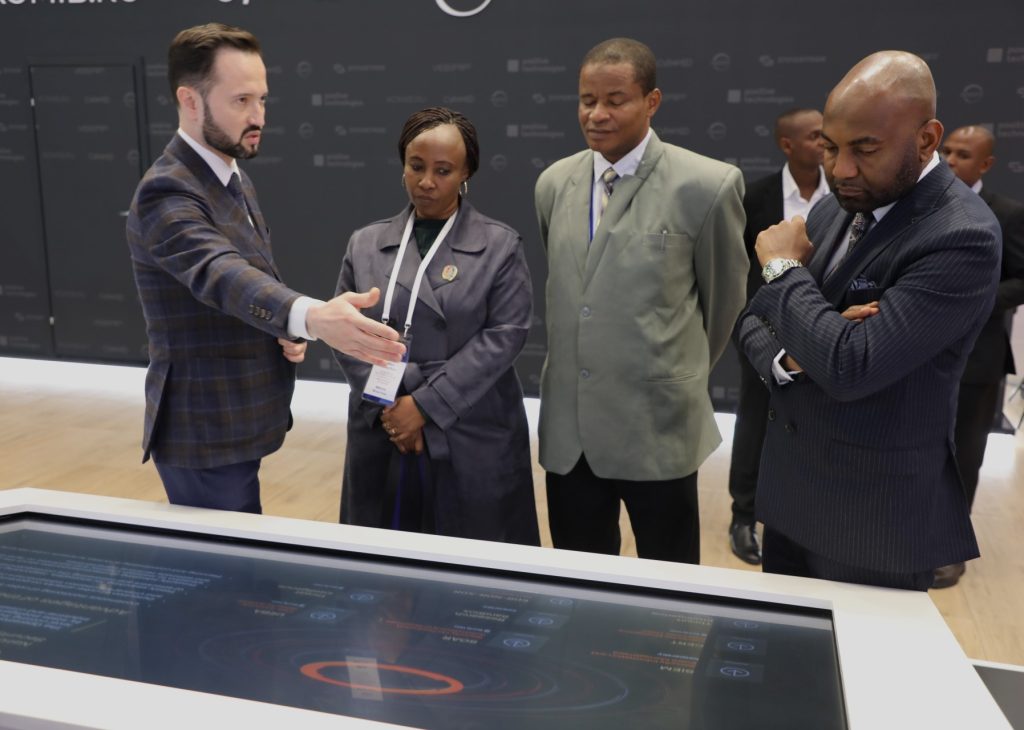 Waziri wa Mambo ya Ndani ya Nchi, Mhandisi Hamad Masauni (watatu kulia) na Mkurugenzi wa Idara ya Utawala na Rasilimaliwatu wa wizara hiyo, Miriam Mmbaga(kulia) wakionyeshwa jinsi Mfumo wa Kudhibiti Uhalifu wa Kimtandao unavyofanya kazi na Mtaalumu wa Teknolojia ya Habari kutoka Kampuni ya KOMIB,Egor Bogomolov wakati wa Maonesho ya Teknolojia ya Kudhibiti Uhalifu huo yanayoendelea katika Ukumbi wa Kimataifa wa Mikutano wa EXPOFORUM ambapo Maafisa wa Daraja la Juu kutoka serikalini wanaohusika na mambo ya Usalama kutoka takribani nchi 20 Duniani wamekutana nchini Urusi.Picha na Wizara ya Mambo ya Ndani ya Nchi.