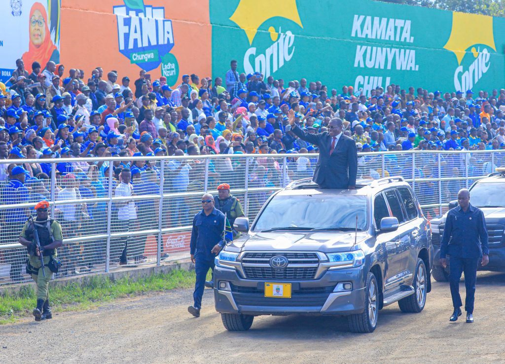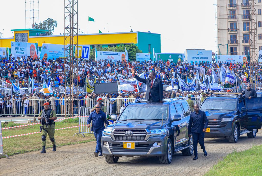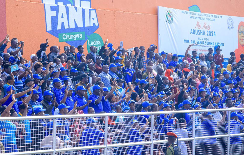 Makamu wa Rais wa Jamhuri ya Muungano wa Tanzania Mhe. Dkt. Philip Mpango akiwapungia mkono Wafanyakazi mbalimbali waliojitokeza katika Sherehe za Mei Mosi wakati akiwasili katika Uwanja wa Sheikh Amri Abeid Mkoani Arusha kushiriki Maadhimisho ya Siku ya Wafanyakazi Duniani tarehe 01 Mei 2024. Makamu wa Rais amemwakilisha Rais wa Jamhuri ya Muungano wa Tanzania Mhe. Dkt. Samia Suluhu Hassan katika Maadhimisho hayo.