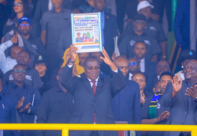 Mpango akionesha Gazeti la Mfanyakazi Tanzania mara baada ya kulizindua