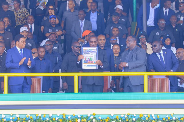 Mpango akizindua Gazeti la Mfanyakazi Tanzania wakati wa Maadhimisho ya