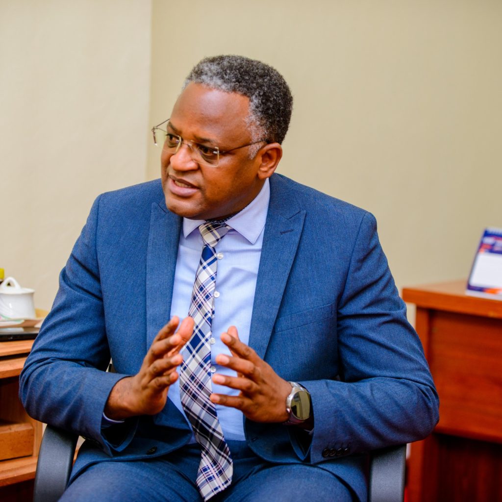 Katibu Mkuu Ofisi ya Waziri Mkuu,Sera Bunge na Uratibu,Dkt Jim Yinazi akifafanua jambo mara baada kupokea msaada 13.7m/- kwa ajili ya waathirika wa mafuriko ya Hanang kutoka kwa Jukwaa la Viongozi Tanzania.