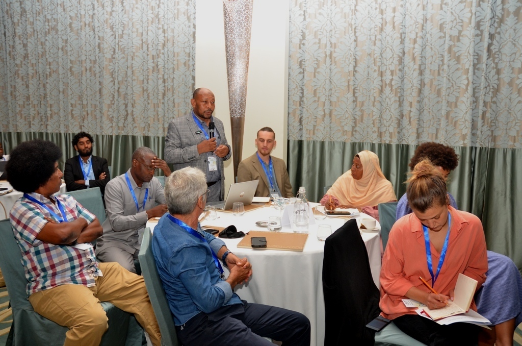 Balozi wa Saudia Nchini Tanzania Yahya Bin Ahmad Okeishi akizungumza katika warsha ya kujadili mradi wa kulitengeneza upya jengo lililokua la sinema (majestic) na kuwa kituo kukuu cha utamaduni baada ya matengenezo hayo,warsha hiyo ilifanyika Park khayyt Mjini Unguja.