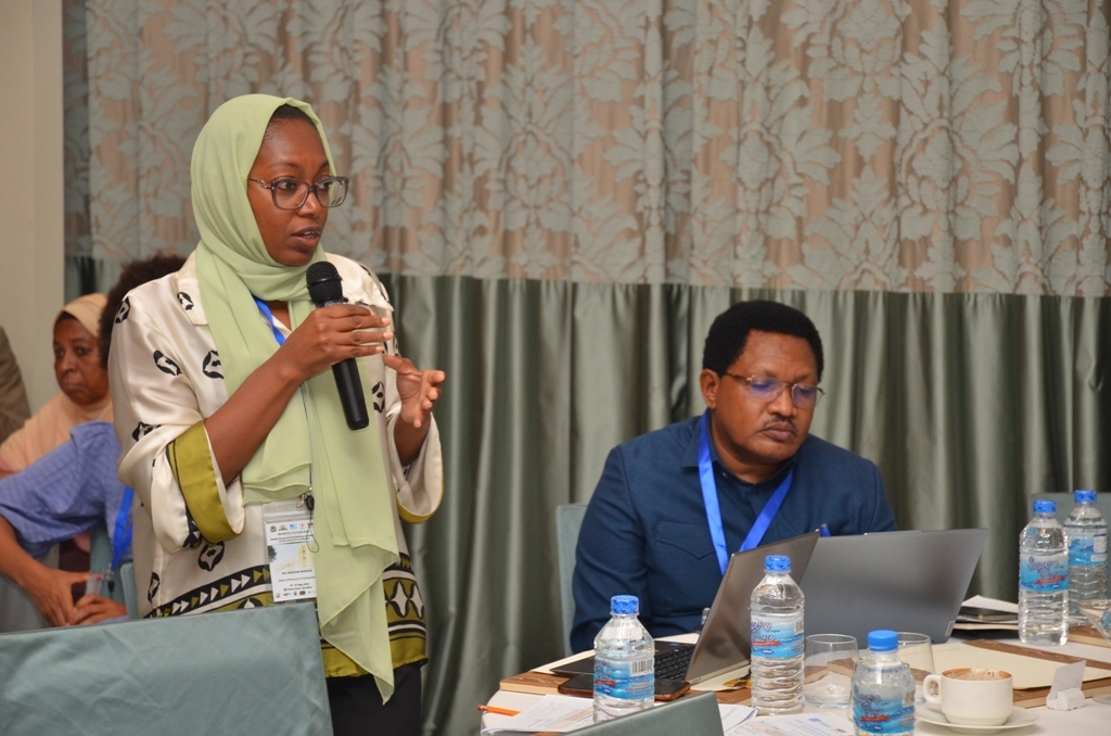 Mkurugenzi Idara ya Makumbusho na mambo ya kale Maryam Mansab akichangia mjadala katika warsha ya kujadili mradi wa kulitengeneza upya jengo lililokua la sinema (majestic) na kuwa kituo kikuu cha utamaduni baada ya kukamilika matengenezo hayo warsha hiyo ilifanyika Park Khayyti Mjini Unguja