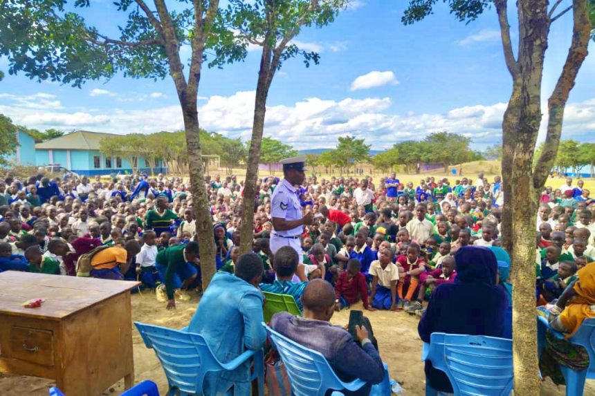 Msaidizi wa Mkuu wa Usalama Barabarani Wilaya ya Momba Mkaguzi Msaidizi wa Polisi Anton Sabasaba akiwa na Koplo Baraka Kabala wametoa elimu ya umuhimu wa kufuata sheria za usalama barabarani kwa wanafunzi wa shule ya Msingi Chapwa iliyopo Tunduma Wilayani Momba.
