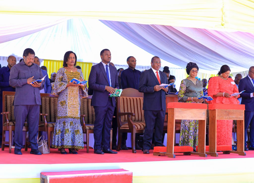 Makamu wa Rais wa Jamhuri ya Muungano wa Tanzania Mhe. Dkt. Philip Mpango na Mwenza wake Mama Mbonimpaye Mpango wakiwa wameungana na waumini pamoja na viongozi mbalimbali kushiriki adhimisho la Misa Takatifu wakati wa Sherehe ya Kuwekwa Wakfu Mhashamu Askofu Msaidizi wa Jimbo Kuu Katoliki Dodoma Wilbroad Kibozi iliyofanyika Kituo Cha Hija Miyuji Mbwanga mkoani Dodoma tarehe 12 Mei 2024.