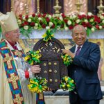 Waziri Mkuu Kassim Majaliwa akipokea zawadi ya picha yake iliyochorwa na Charles Vitus Maembe (Kulia) wakati Waziri Mkuu alipokagua gala la Kokoa na kuzungumza na wananchi katika kijiji cha Ipinda Wilayani Kyela Mkoani Mbeya Mei 12, 2024. (Picha na Ofisi ya Waziri Mkuu)