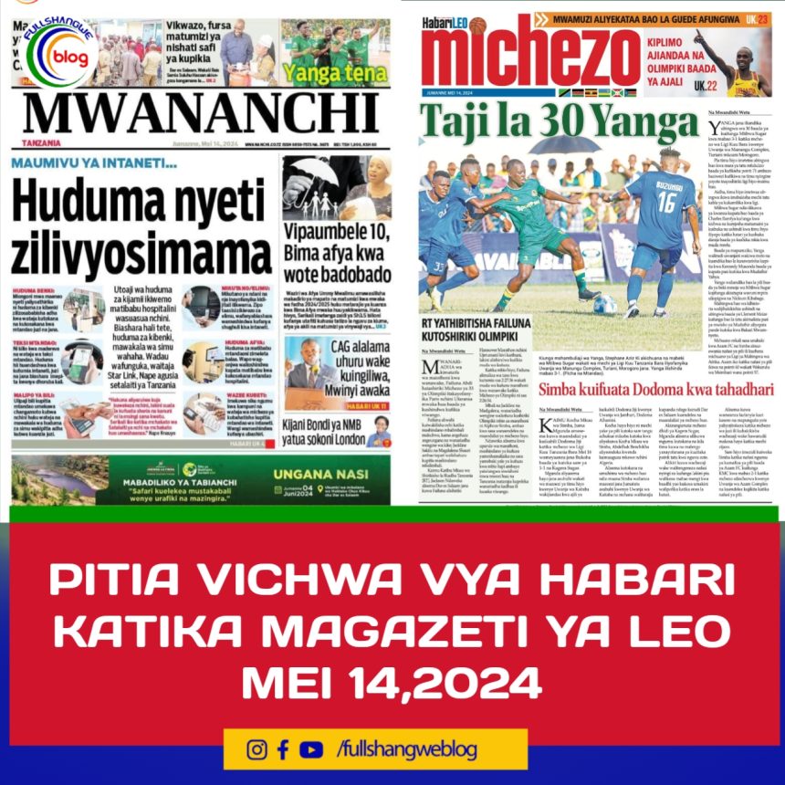 MagazetiPITIA VICHWA VYA HABARI KATIKA MAGAZETI YA LEO MEI 14,2024 Last updated: 2024/05/14 at 3:31 AM Alex Sonna 2 years ago Share SHARE Alex Sonna May 14, 2024 May 14, 2024 Share this Article Facebook Twitter Email Print Previous Article SERIKALI YA MAPINDUZI ZANZIBAR YAIPONGEZA KAMPUNI YA GLOBAL EDUCATION LINK Next Article DKT. NCHEMBA AKUTANA NA MWENYEKITI WA BODI BENKI YA MAENDELEO TIB