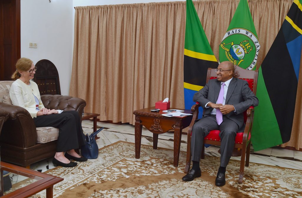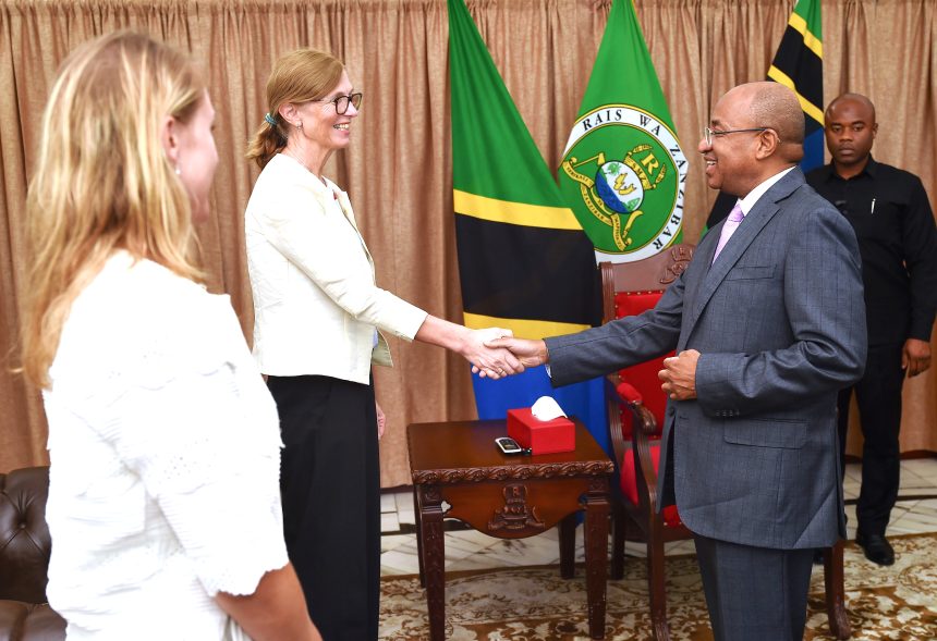 RAIS wa Zanzibar na Mwenyekiti wa Baraza la Mapinduzi Mhe.Dk.Hussein Ali Mwinyi akisalimiana na Balozi wa Norway Nchini Tanzania Mhe.Toni Tinnes alipofika Ikulu Jijini Zanzibar leo 30-5-2024 kwa mazungumzo na kujitambulisha, mazungumzo hayo yaliyofanyika katika ukumbi wa